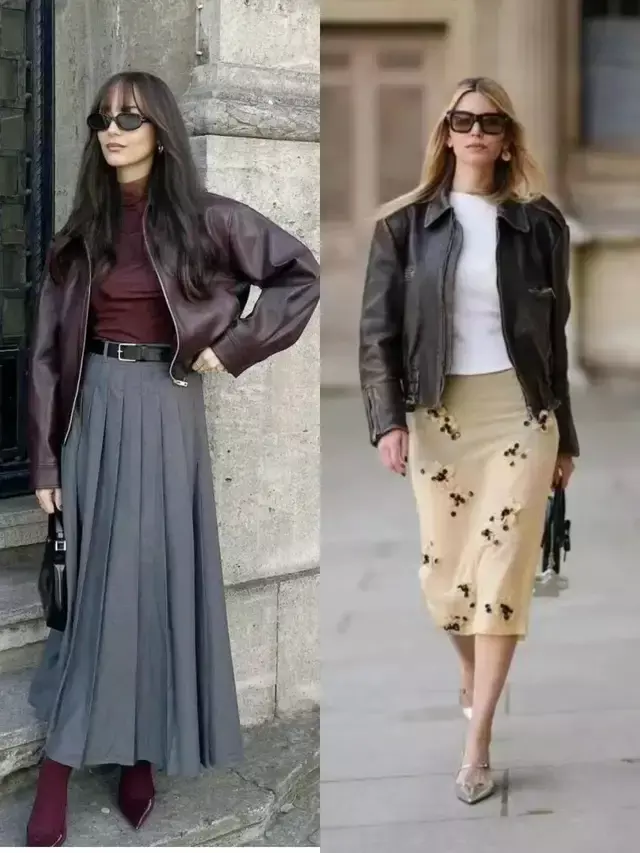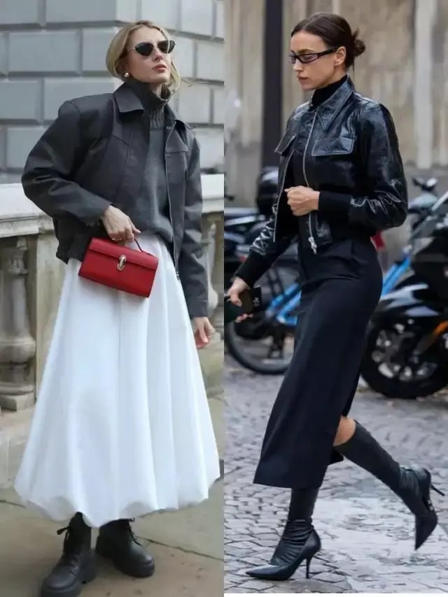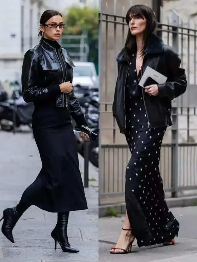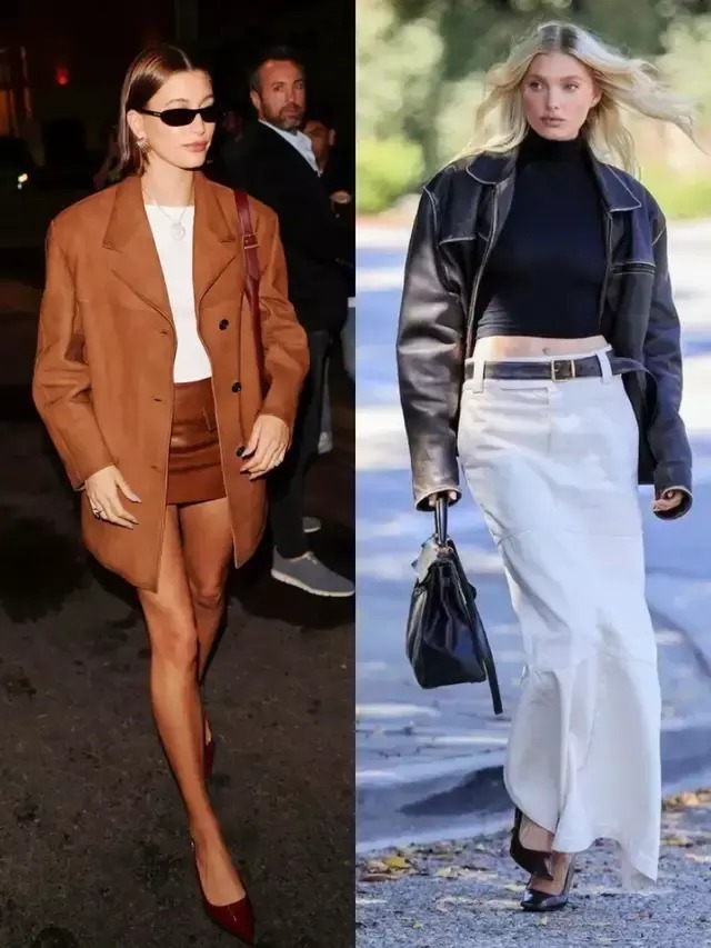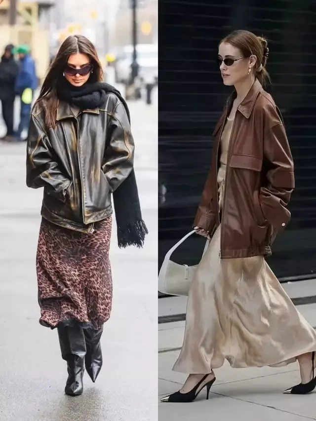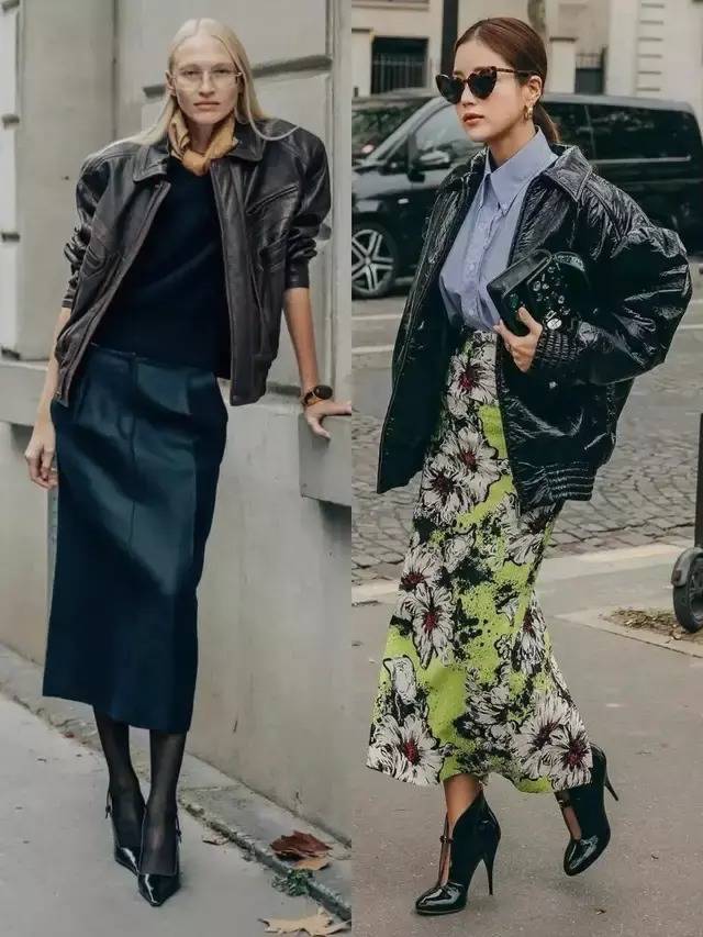 无论我们穿的是一件棕色的皮衣外衣,依然玄色皮衣外衣,配上一条知性长裙,慵懒行动腔调坐窝就拉满。当我们搭配一条玄色皮质半裙,气场全开。