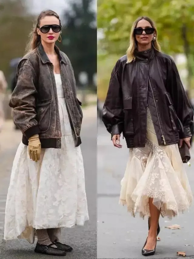 皮衣外衣的妙处就在于一件外衣便能解锁万千穿衣作风,好比上头用一条蕾丝刺绣的白色连衣裙来穿搭,维合手摩登与当代任性完整聚会。就像径直从秀场走出来,高等又惊艳。
