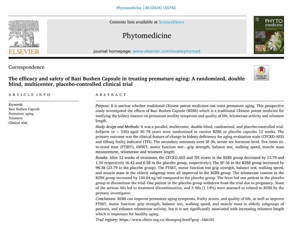 中医药的当代化,离不开严谨的循证医学考据。2024年6月,一项由中国中医科学院西苑病院牵头、发表于海外泰斗期刊《Phytomedicine》的重磅盘问,为八子补肾提供了高质料的科学笔据。