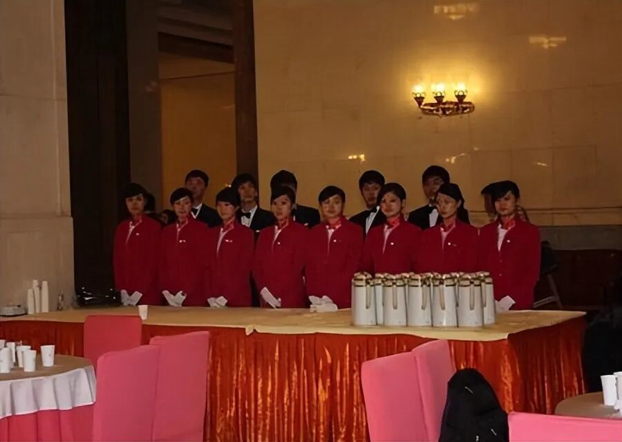 据侯桂珍回忆,东说念主民大礼堂的奇迹员培训,第一项便是叠餐布,有荷叶型、孔雀开屏型等多种叠法;第二项内容是托砖头,一块报纸包好的砖头放在传菜的托盘里,新东说念主奇迹员要托着它练站姿、练走线。此外还要进修口头管制、奇迹气派、突发情况的处置等等……不错说时间难度比一般的五星级旅店还要高。