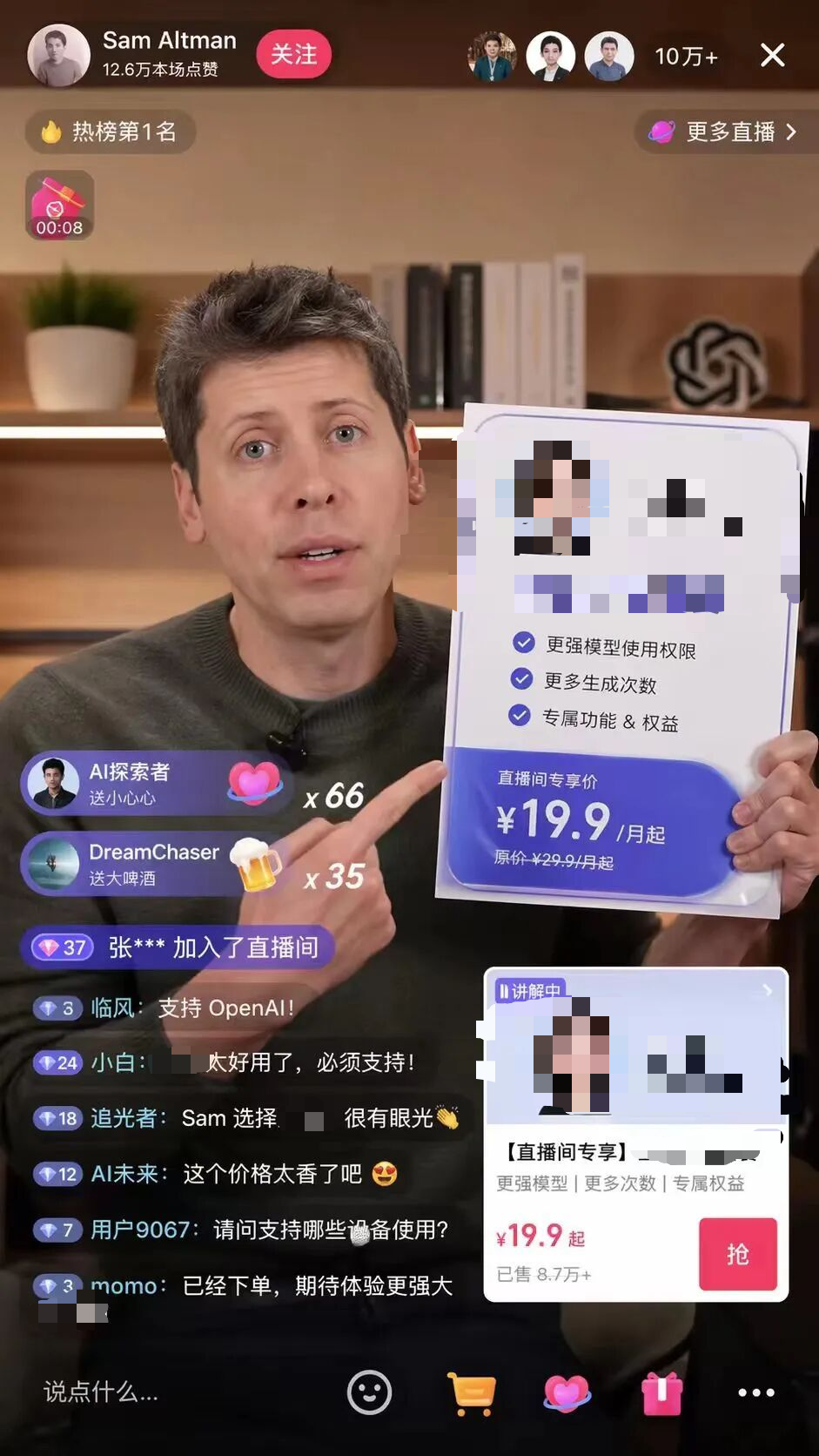 ChatGPT Images 2.0生成的山姆·奥特曼直播带货图(部天职容为记者打码暧昧措置)