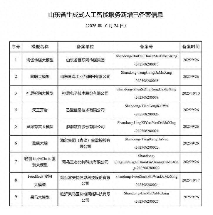 10月27日,记者从山东省互联网信息办公室获悉,山东省互联网传媒集团自主研发的“海岱传媒大模子”已提神通过山东省生成式东说念主工智能就业备案。值得正经的是,该模子已于前年12月完成算法备案,这次就业备案的完成,象征着“海岱传媒大模子”成为“算法备案+就业备案”双合规的大模子家具,该模子深度垂直就业于传媒规模,旨在为本体坐蓐注入聪惠新动能。