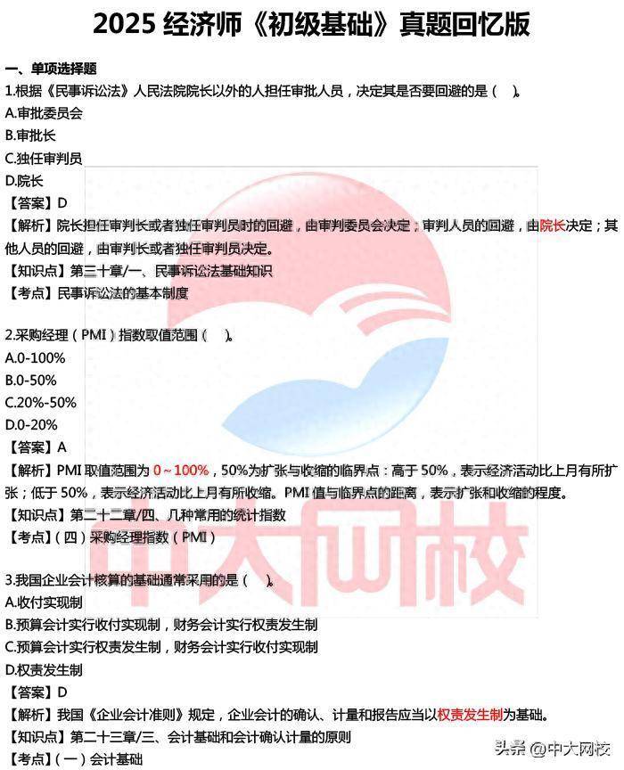 2025年低级经济师执行《经济基础》科目依然开考规模,为简单考生即时了解真题谜底及考后估分,中大网校教研团队实时整理2025年经济师执行《经济基础》执行真题与谜底融会。笃定如下: