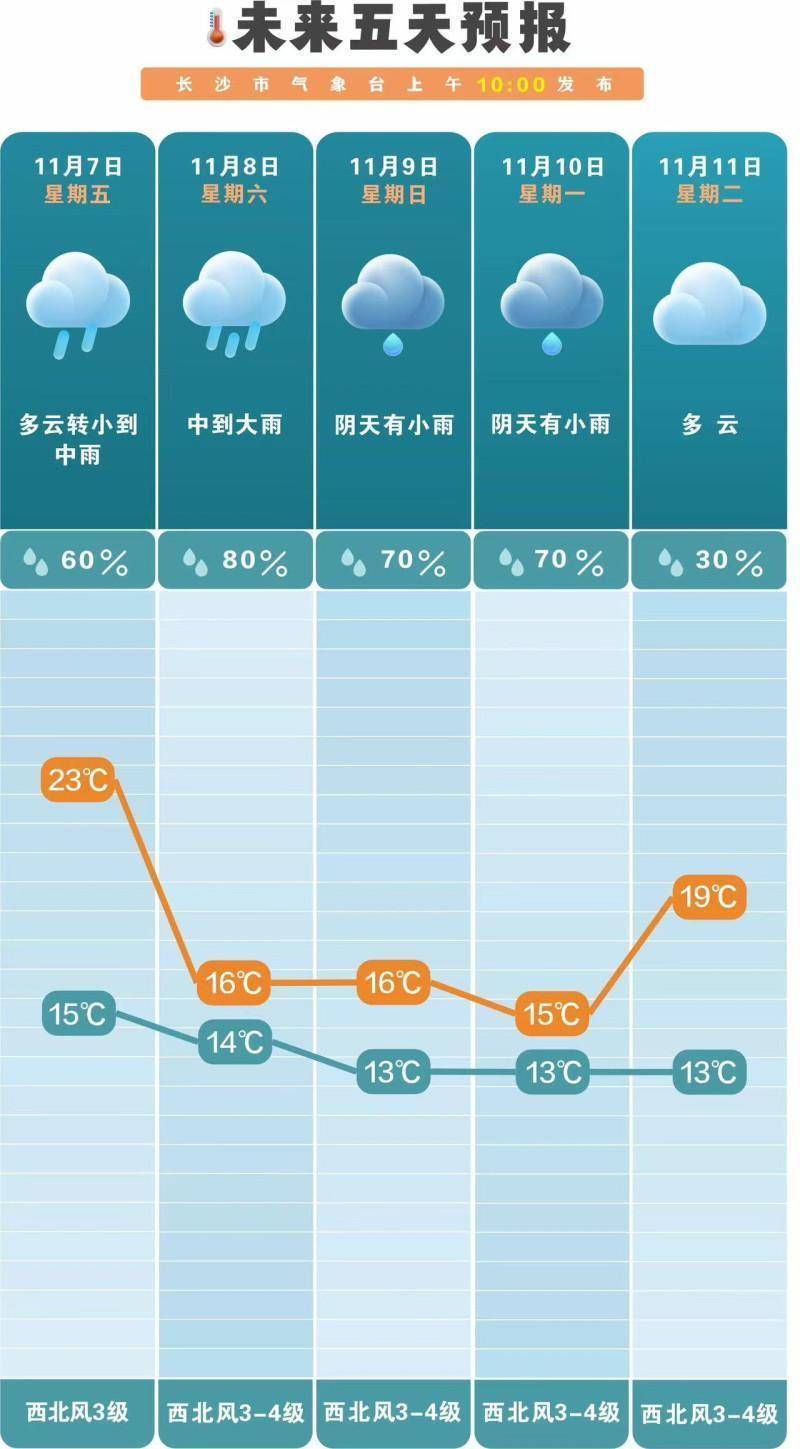 长沙晚报掌上长沙11月6日讯(全媒体记者 舒元臻)23℃,本日穿两件一稔室外“暴走”致使会嗅觉有点热。不外,近日长沙的晴暖天气行将如丘而止。把柄长沙市怡悦台本日发布的最新天气预告,本周天气的关键鼎新点就在未来(7日)晚上,届时长沙将迎来一次剧烈的降温降雨流程,8日最高气温下落至16℃,市民需提前作念好准备。记者防卫到开云kaiyun官方网站,今明两日(6日到7日白昼)长沙气温合乎开云kaiyun官方网站,最高气温保捏在23℃。关联词,这将是这次降温前临了的“和善”。7日长沙多云转小到中雨,夜间气温将急转直下。跟着冷空气来袭,这个周末市民将在“湿冷时势”下渡过。市怡悦台展望,周六(8日)将出现中到大雨,同期气温“打折”,最高气温将从周五的23℃猛降至16℃,跌幅高达7℃,最低气温变化诚然不大(14℃),但陪伴而来的还有3到4级的西北风,风雨交集,体感将更为湿冷。
