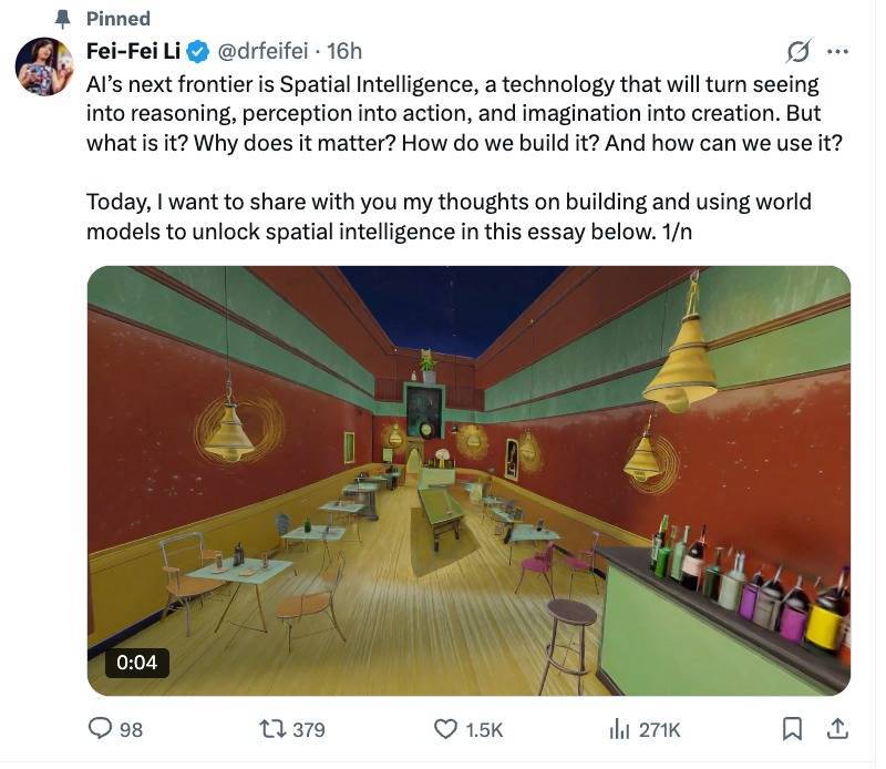 智东西11月11日音尘,昨晚,斯坦福大学素养、“AI教母”李飞飞发表了一篇长文博客,并在文中属目解读了空间智能(Spatial intelligence)的宗旨,并称AI的下一个十年的发展标的等于构建着实具备空间智能的机器。